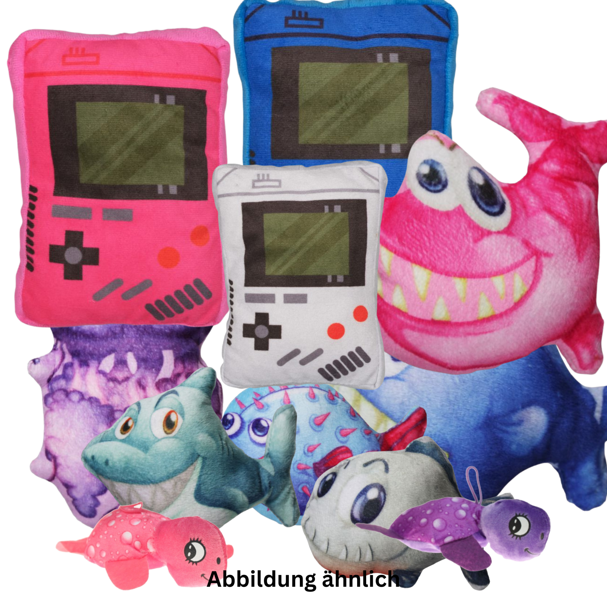 Enthalten ist eine zufällige, bunte Mischung an Plüschtieren in verschiedenen Größen (ca. 10–24 cm). Die abgebildeten Figuren dienen nur zur Veranschaulichung – tatsächliche Motive können abweichen. Jedes Paket enthält eine spannende Auswahl ohne Anspruch auf bestimmte Designs oder Marken.